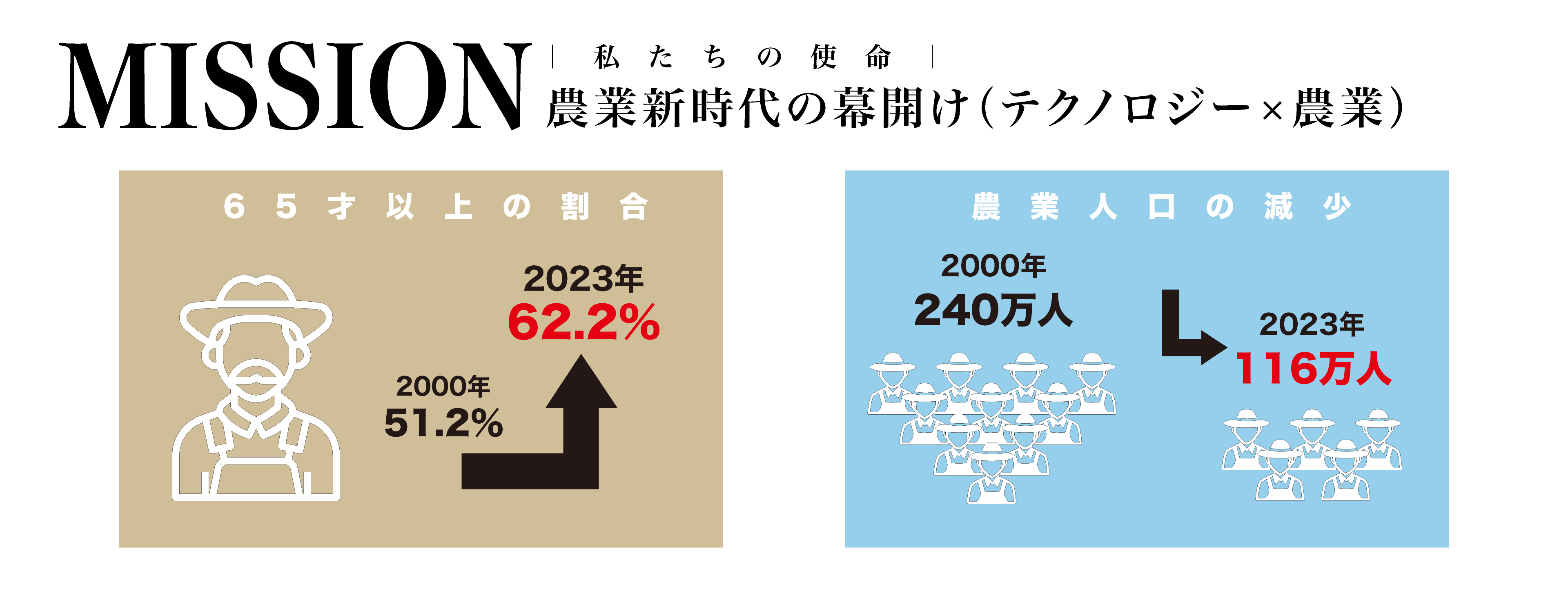 日本の農業は、生産者の減少と高齢化という大きな転換点を迎え、これまでの「経験と勘」を頼りにした農業からロボットやAIを活用した「スマート農業」へと変わりつつあります。この「農業新時代」は、重労働を自動化し、技術を可視化することで、誰もが活躍できる持続可能なビジネスへとアップデートする機会とも言われています。ホーサックは、スマート農業の推進を通じて、次世代型農業の未来を切り拓きます。